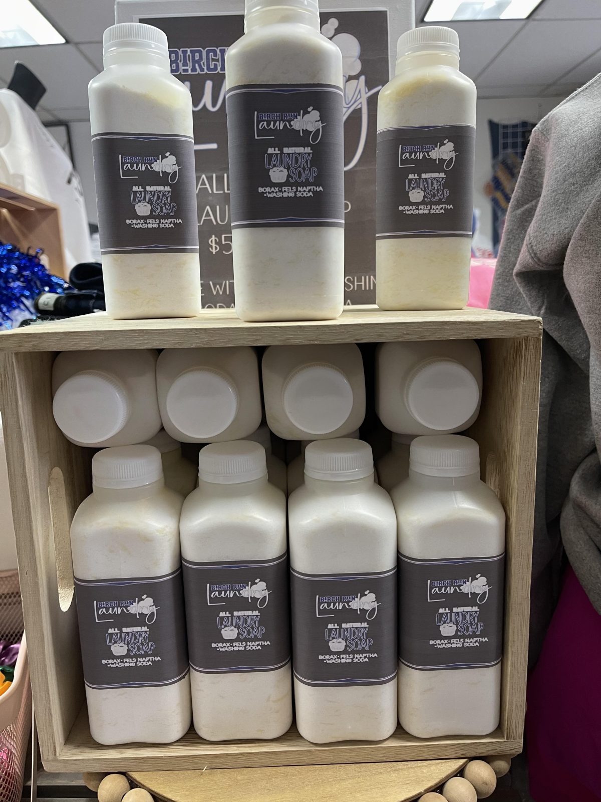 No harsh chemicals in our soap we use washing suds, Fels Napth, and borax.
